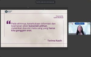 Pada kesempatan yang sama Putri Indonesia Kebudayaan 2025 sekaligus Sandiman Ahli Pratama Badan Siber dan Sandi Negara Syafira Mardhiyah menyampaikan keterbukaan informasi dan keamanan siber bukanlah pilihan, melainkan dua sisi mata uang yang harus kita genggam erat,” ujarnya.